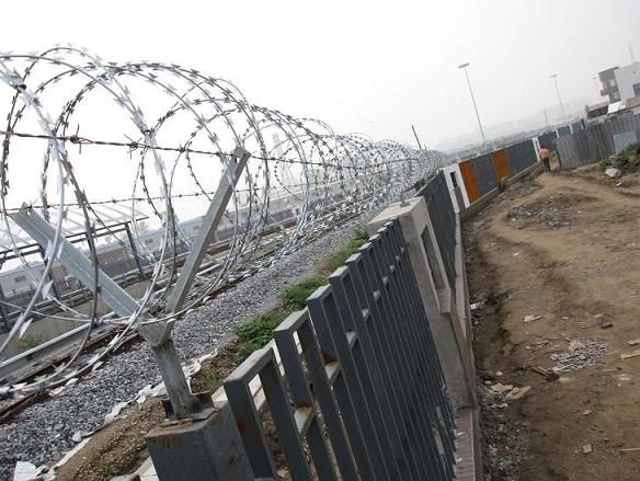 小区墙头防盗网园林绿化防护网 园林绿化防护网是由全自动化的刺绳机拧编而成。民间俗称铁蒺藜。成品种类:单丝..