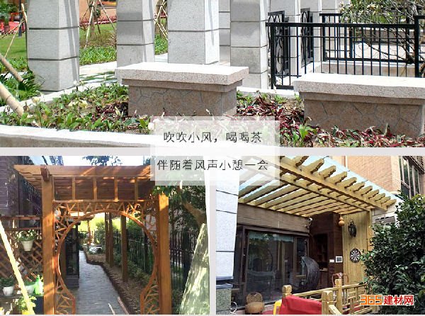 3.优点:普通木材虽然价格低,但耐久性差。因为花架通常都是在室外的,防腐木有很好的防腐、防虫、防水等特点,防腐木花架不仅外观朴实自然,而且也弥补了普通木材耐久性差的缺点,所以可以说是制作花架*好的建筑材料 。