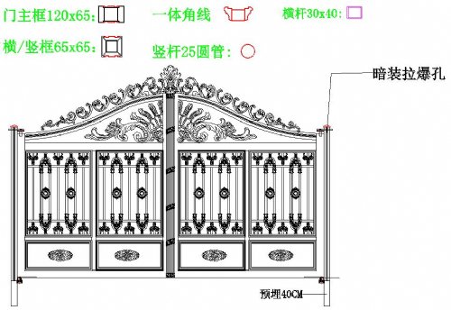适用范围:花园,别墅,庭院,公园,酒店 材料:铸铁花件,锻打花件,方钢,方管,扁铁 制作工艺:手工锻打,..