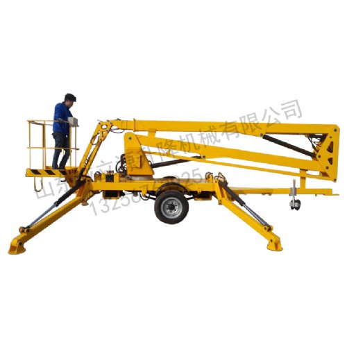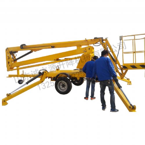 拖车折臂式升降机:可以挂在汽车上,与汽车同步,适合野外高空作业。升降方式:1、用380-220V电源2、用电源不方便,可以用电瓶驱动升降。外型美观,行走方便。车载折臂式升降机:把曲臂式升降机安装在汽车上,利用汽车动力驱动升降。适合远路程的野外高空作业。 - 山东诚立源升降机械有限公司