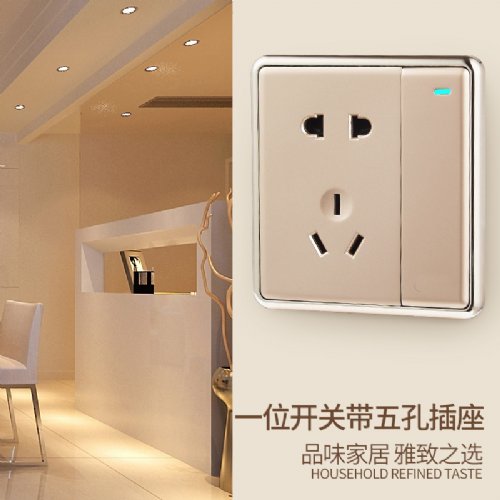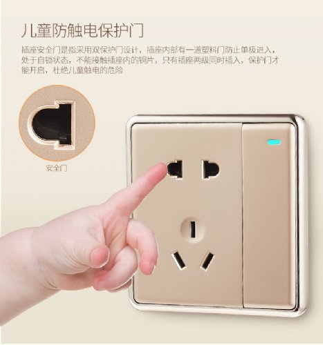 1、开关边框:(锌合金)金色 2、开关面板:黑色亚克力面板 3、开关尺寸:86型 4、开关功能:..