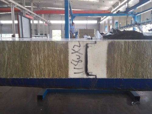 彩钢岩棉夹芯板及其生产工艺实现了在工厂中通过自动化的设备将岩棉和钢板复合成一个整体,从而改变了以前岩棉板..