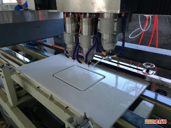 在台面加工中采用先进的无尘加工工艺,充分利用水循环技术,有效的避免了普通面板切割机加工过程中尘土四处飞扬的现象,噪音也大大减小,给加工工人营造了一个更加环保安全的加工环境。