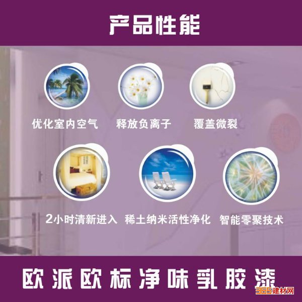是运用目前世界上较先进的纳米技术,采用进口乳液及多种助剂精制加工而成。漆膜表面超强疏水、疏油,使油污、墨水等难以粘附粉尘颗粒水冲而落。特殊配方设计,使漆膜透气性更好。属现代生活中应用广泛又环保的高档乳胶漆。