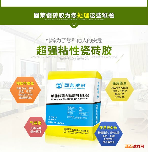 3、瓷砖和基底不必浸泡和预湿,施工快捷,安全性能好;
