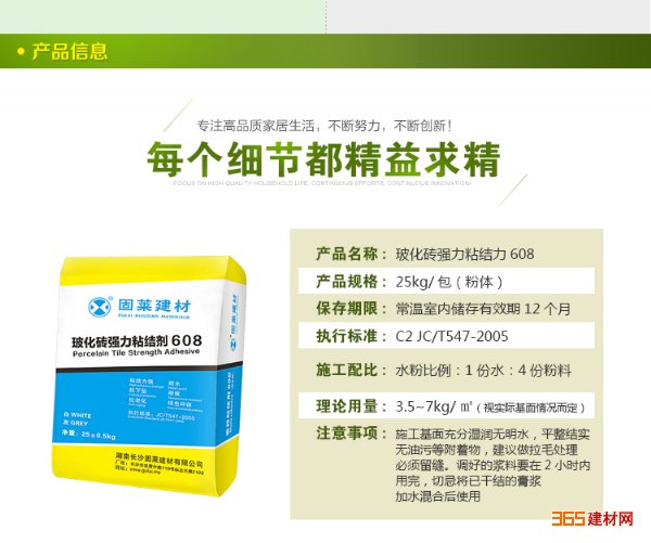 6、加水配制好的粘结剂应在2小时内用完,温度低于50C和雨雪天不能施工。粘结瓷砖用量,每平方米5.5公左右干粉。