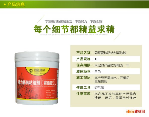 广泛用于旧墙翻新、粘贴瓷砖、玻化砖、玻璃马赛克、大理石等,还可以用于新造建筑混凝土表面修补和粉刷。这种粘结剂渗透性强,能分解掉残留在混凝土表面的脱模油,用固莱牌强效高级瓷砖粘结剂能确保瓷砖不脱落,粉刷不空鼓,这是一个既环保又防水的理想材料,它成本低、涂刷方法简单,贴近生活,贴近实际。