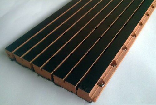 是根据声学原理精致加工而成,由饰面、芯材和吸音薄毡组成。木质吸音板分槽木吸音板和孔木吸音板两种。