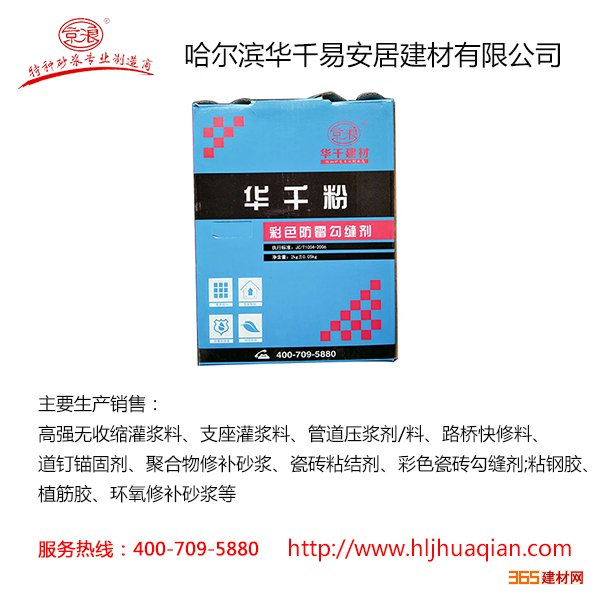 哈尔滨华千是一家专业的灌浆料、修补砂浆以及压浆料等产品的生产厂家,致力于混凝土灌浆与修补、混凝土裂缝诊断与处理、混凝土坏损缺陷修补、结构加固与抢修以及各种功能型预拌砂浆应用技术等领域的探索与研究,产品在电力、市政、高铁、水利、油田、矿山、石化、民航机场、公路桥隧以及工业建构筑物等领域,设备安装、抢修维修、改造加固等工程中被广泛应用。产品厂家直销,价格更优惠,质量更有保障。如果您想了解瓷砖勾缝剂价格,欢迎您拨打热线:400-709-5880,或登陆官网,点击在线客服,哈尔滨华千,竭诚为您服务!