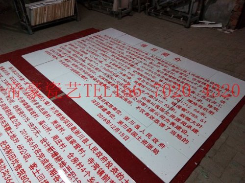 帝豪瓷艺,拥有强大的设计队伍,先进的生产设备,唯美求精的企业宗旨。主要产品:瓷砖宣传画;单位辉标;法规条文;计划生育宣传;森林防火瓷砖画、小农水利瓷砖标示牌、土地整理瓷砖标识牌、陶瓷壁画、通信电力瓷砖宣传画、瓷砖墙体标语、水利标识牌、教育宣传画、基本农田保护项目瓷砖宣传画、高标准基本农田建设项目瓷砖宣传画、国家农业综合开发项目瓷砖宣传画、农村饮水安全工程瓷砖宣传画瓷砖地图;山水壁画;墙体标语;交通标致;电力宣传瓷画;水利标;教育宣传画。广泛适用于教育、农业、电力、水利、及家居装饰等行业的美化及宣传需要