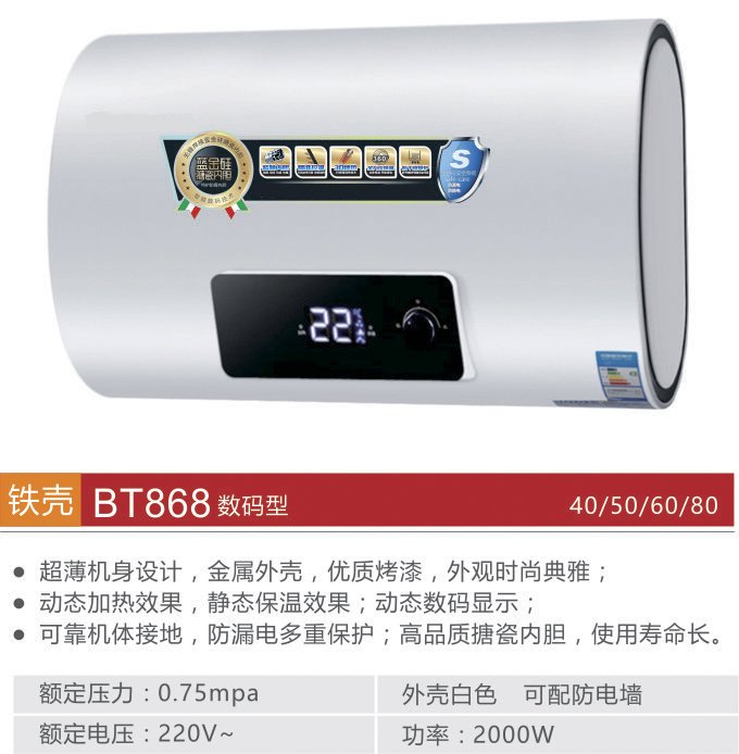 电热水器可选圆桶/扁桶/电暖两用/即热式/速热式/小厨宝/电脑板/数显版/机械版等款式,可配分体和一体防电墙,机身可选:Aps材料,Aps拉丝材料,金属外壳,可选升数有30L/40L/50L/60L/80L/100L/,