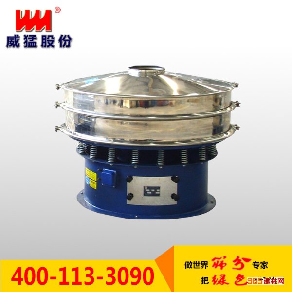 分过滤机又称旋振筛,我公司生产的WXZ系列旋振动筛的基本原理是利用电机轴上下安装的重锤(不平衡重锤),将电机的旋转运动转变为水平、垂直、倾斜的三次元运动,再把这个运动传递给筛面,使物料在筛面上做外扩渐开线运动,故该系列振动筛称之为旋振动筛。旋振筛具有物料运行的轨迹长,筛面利用率高等优点,调节上、下两端重锤的相位角,可改变物料在筛面上的运动轨迹;可以对物料进行精筛分、概率筛分等。我公司生产的旋振筛共有WXZ400、600、800、1000、1200、1500、1800、2000八种规格。