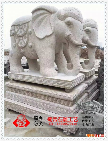 就是用石头雕刻出来的大象,是在中国传统建筑中经常使用的一种装饰物。在中国的宫殿,寺庙,佛塔,桥梁,府邸,园林及陵墓上都会看到它。其可用的石材有福建白麻石、青石、黄锈石、汉白玉、花岗岩、大理石、雪花白等。