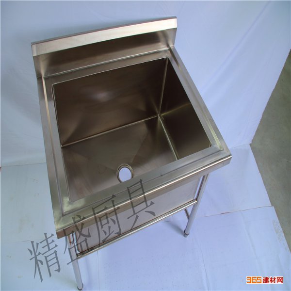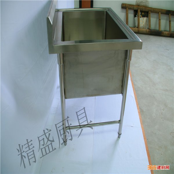 3、洗涤台置于38MM直径不锈钢之上,在台脚上有100MM*25MM电解U槽加固,且配置可调配置不锈钢子弹脚,底架与交叉轨与台的结点冲盆焊接抛光。 - 东莞市精盛厨具制品有限公司