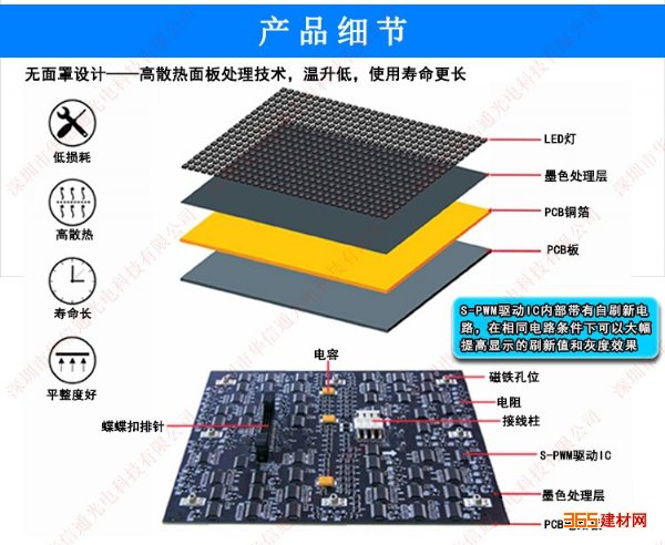 7、高可靠性高寿命:采用直插转接板设计,简化箱体内连线,有效减少连接不良问题并可降低信号衰减和干扰,高品质发光器件保证高可靠性高寿命;