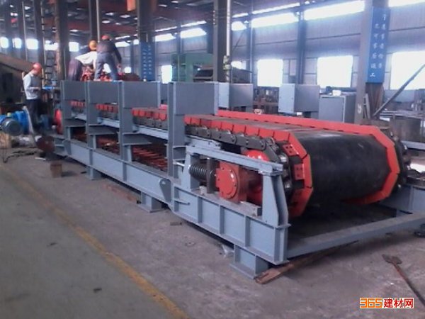 运行装置是板式给料机的关键部件,包括龙骨、输送带、侧裙板和输送链。