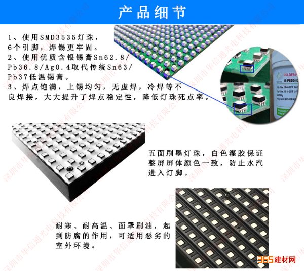 1.高亮度超清晰无死灯 百屏联动同步播放 2.进口LED高亮灯珠,寿命达10万小时。电流均匀,稳..