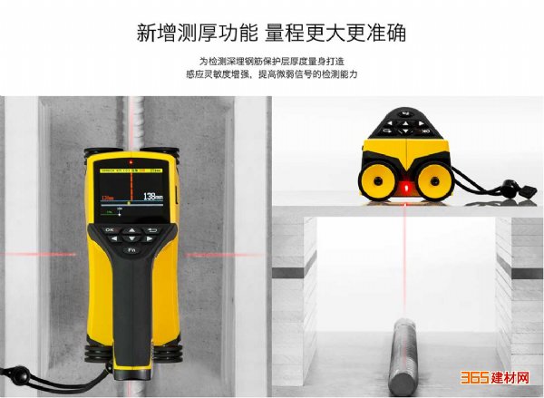 是一种便携式智能无损检测设备, 用于检测钢筋混凝土结构施工质量,能够检测钢筋保护层厚度,钢 筋位置、走向及分布情况,还可对非磁性和非导电介质中的磁性体 及导电体进行检测。