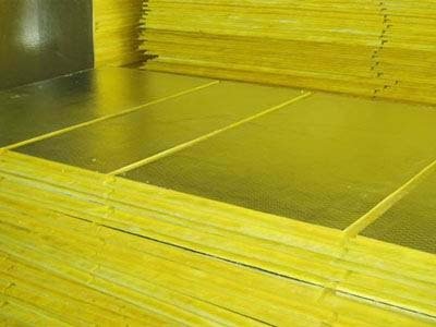 玻璃棉板是玻璃棉的深加工产品,它所有的原料足玻璃棉板半成品,经磨光、喷胶、贴纸、加工等工序制成。为了保证共有一定的装饰效果,表面基本上有两种处理办法:一是贴上塑料面纸;二是在其表面喷涂。喷涂往往做成浮雕形状,其造型有大花压乎、中花压平及小点喷涂等图案。它有多色彩可供选择,目前用得较多的是白色。 - 大城县前李各庄京荣保温材料厂