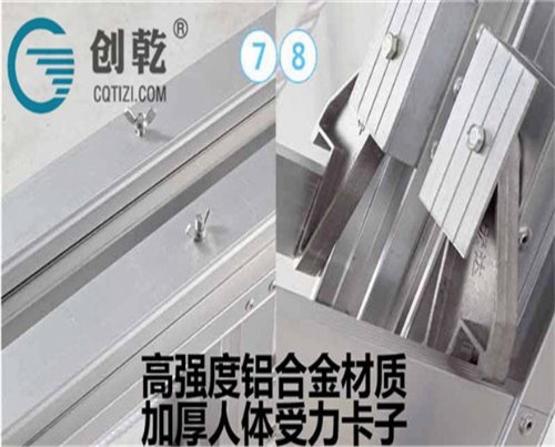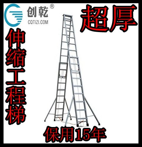 加厚铝材,两节伸缩梯人字梯,中间比别人多重叠50CM,这样梯子使用的时候更稳固安全。