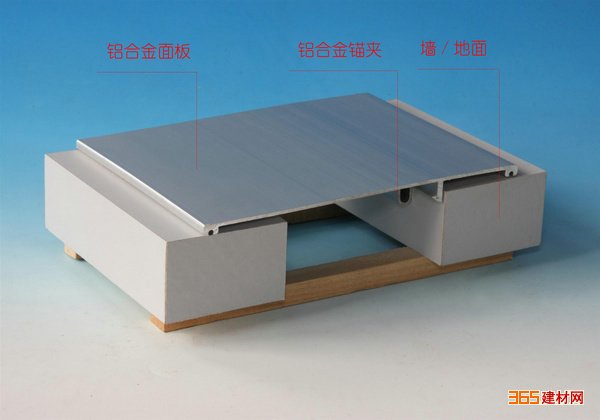 内墙/顶棚变形缝——通过把铝合金卡槽固定在墙缝的一条边上,将有倒齿的铝合金面板卡到卡槽中来实现变形,在建筑物发生伸缩变形时能保持其水平状态。
