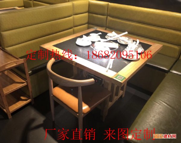 厂家直销火烧石火锅桌 下沉式电磁炉无烟火锅桌 串串香火锅店桌椅