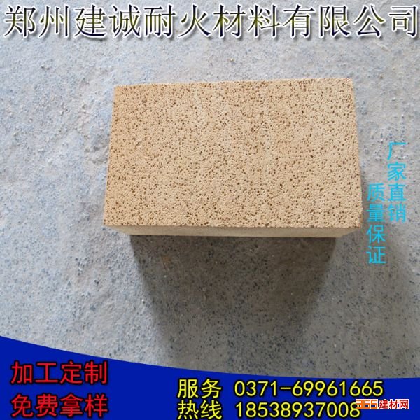 高铝隔热轻质耐火砖是以铝矾土为主要AL2O3含量不小于48%的隔热轻质耐火砖。其生产工艺采用泡沫法,也可采用烧尽加入物法。高铝质隔热轻质耐火砖可用于砌筑隔热层和无强烈高温熔融物料侵蚀及冲刷作用的部位。直接与火焰接触时,一般的高铝质隔热耐火砖的表面接触温度不得高于1350℃。莫来石质隔热耐火砖可直接接触火焰,具有耐高温,强度高,节能效果显著等特点。适用于热解炉、热风炉、陶瓷辊道窑、电瓷抽屉窑及各种电阻炉的内衬。联系方式:18538937008