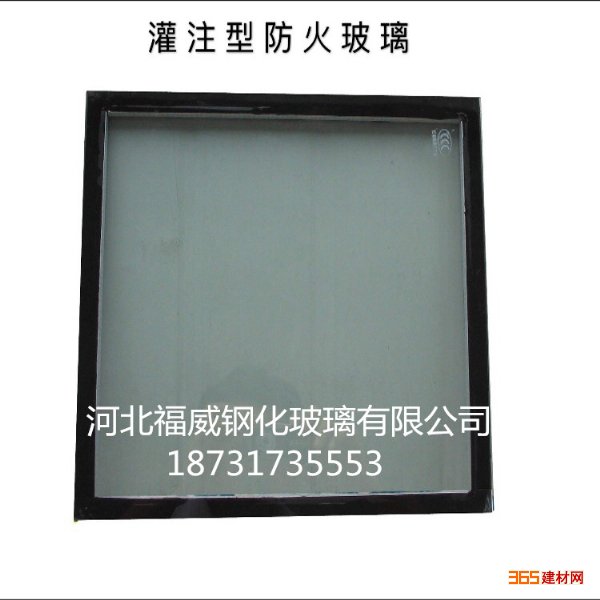 灌注型隔热防火玻璃是由2片玻璃经过密封后,在其中间灌入无机防火胶制作而成。当火灾发生时,向火面玻璃遇高温后很快炸裂,中间透明胶冻状的无机防火胶层会迅速硬结,形成一张白色不透明防火隔热板,并大量吸收火焰燃烧所带来的高热量。在阻止火焰蔓延的同时,也阻止高温向背火面传导。 - 河北福威钢化玻璃有限公司