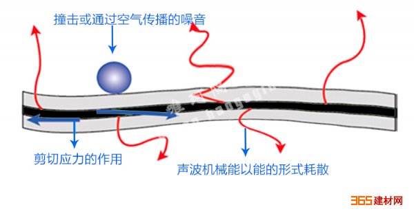 固体传音:隔音板的单位密集面密度越大,隔音量就越大,面密度与隔音量成正比关系。隔音板上有一定弹性,当隔声板在声波撞击下开始振动时,板中间的高分子材 料会在剪应力的作用下连续的经受挤压应力和剪应力,有效地将声波的机械能转化为热能耗散掉,从而显著提高隔声板的隔声效果。