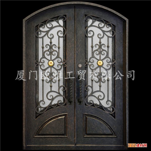 - 厂家直销铁艺进户门 锻打铁艺玻璃双开进户门