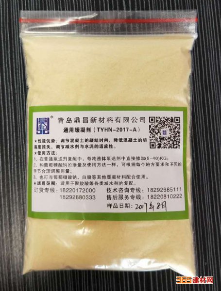 是我公司自主研发生产的一种新型混凝土外加剂。该产品分子结构中有大量的羟基和羧基,能在水泥水化产物的碱性介质中与游离的 Ca 2+ 生成稳定的络合物,延迟了CH的析晶,同时还可以吸附于水泥颗粒表面,延缓水化反应的进行。本产品对钢筋无锈蚀作用,可广泛应用于建筑、道路、桥梁、水工和地下工程等各类泵送施工的混凝土。本产品在运输及存储过程中若出现轻微板结属正常现象,不影响产品性能。
