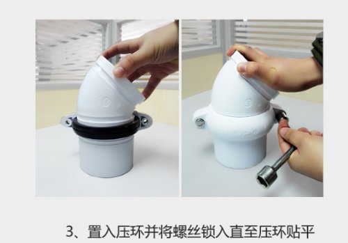 利用科学合理的结构设计,管道之间采用沟槽压环式柔性连接,其特征是利用W型三元乙丙橡胶圈内径和管道端口的外表面通过紧度公差配合,产生张力紧贴以及橡胶圈内部环形空囊产生内压,并用ABS材质制成的特制压环紧固定位,从而实现管件间四重密封,确保管道密封性和连接牢固。