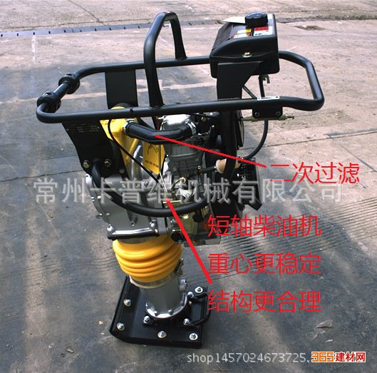 1.配置专业冲击夯型柴油机,柴油机采用短轴发动机 紧贴夯机,结构稳定,牢固