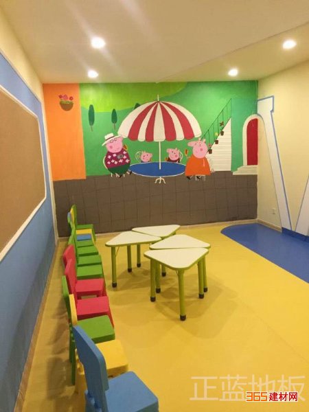 正蓝幼儿园地板表面图案色彩多种多样像鲜艳红 黄 蓝等多种单色。还有小朋友喜欢的各种卡通图案。产品铺装后效果梦幻多彩,使人宛如进入童话般的世界。