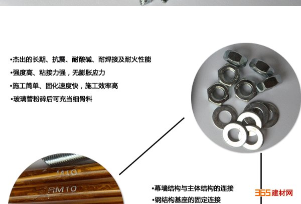 产品描述: 1、适用于开裂混凝土的注射系统包括了动荷载定型化学锚栓和高强锚固胶 2、高强锚固胶成..