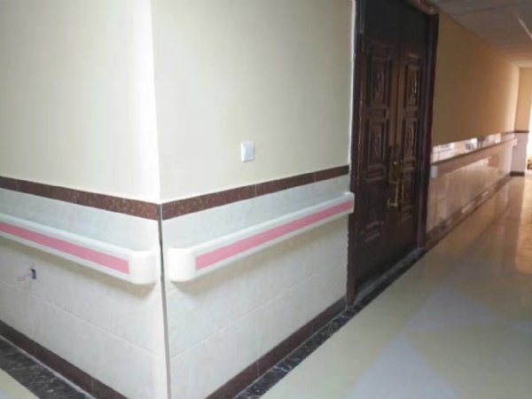 140走廊防撞扶手由四个部分组成,其中面板采用 PVC(聚氯乙烯材)料生成,材料长度5米,厚度2.0MM,可定制颜色。底座和封口采用ABS合成树脂挤压生成。扶手内部采用铝合金材料,铝合金长度5米,有多种厚度可供选择。面板有一定的柔韧性,表面有防滑纹可以更好的抓握,面板具有抗氧化•抗菌•无异味的特点。铝材我们采用防冲击,抗压力结构设计,可以有效的起到防撞的作用。除了安全性的设计以外,铝材还有一个很人性的设计,就是铝材的一侧有一个半圆的凹槽,可以方便抓握。