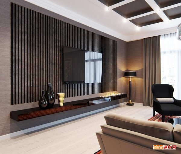 现代简约电视背景墙,平面效果更容易安装清洁,成本是石材背景墙中最为实惠的,2边再加上金属条或者格栅木饰面..
