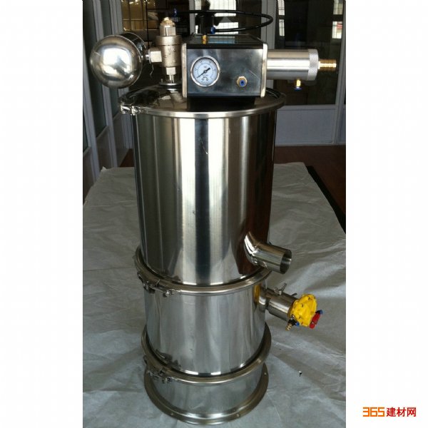 生真空。真空上料机在真空下形成一股气流,在这股气流的作用下,被输送的物料经软管输送到真空料斗中,一定时间后(上料时间,可调整)压缩空气被关闭,气动真空泵无法产生真空,同时料斗的放料门在气缸推动下开启,真空加料机真空消失,物料从放料门自动放入受料设备中(如压片机,包装机等)。同时,储存在气包中的压缩空气反吹过滤器,过滤器自动清洗;一定时间后(放料时间,可调节),压缩空气重新启动,气动真空泵产生真空,放料门关闭,真空上料机再次加料,周而复始,物料被源源不断地送入受料设备中。对料位控制的真空加料机,受料设备的料斗中物料通过料位计完成自动加料。当受料设备的料斗高于