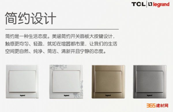 罗格朗开关插座(TCL-Legrand,Legrand,Bticino)拥有超过11种产品线用于各种项目:从经济型到豪华型、从保障性住房到高级住宅、从住宅到酒店到办公楼项目等。设计上,拥有超过70中材质并提供广泛的颜色选择,超过350种功能(自动窗帘、温控器、调光器、门禁、无线、气体探测、酒店房间特定功能等)令用户的使用更为舒适。