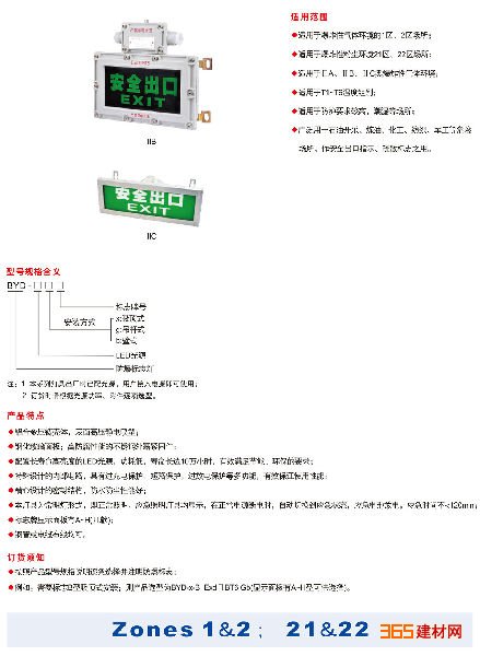 BYW8224防爆标志灯 一.适用场所 适用于爆炸性气体环境1区.2区 适用于可燃性粉尘环境 适..