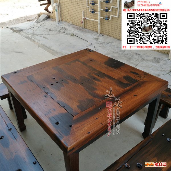四方桌 传统八仙桌组合 老船木餐桌椅