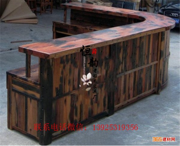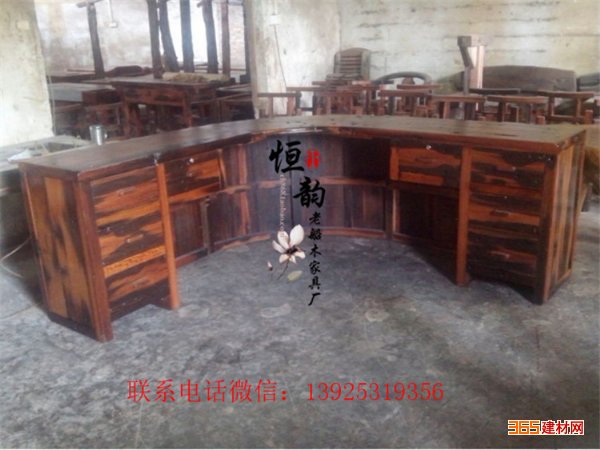 【 品名 】:老船木前台转角 老船木家具原木收银台 实木个性吧台复古酒店吧台