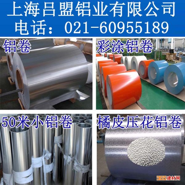 公司常年备有:0.3 0.4 0.5 0.6 0.7 0.8毫米厚度的铝卷,如果你需要以上规格的铝卷可以联系我们,公司将会在3-5内发出货物。目前橘皮压花铝卷常年备有现货库存,可以当天发货。优质的压花铝卷表面光洁,花纹饱满,装饰效果好。我公司的压花铝卷均是经过大型压花设备而成,能够保证质量,是国内优质的压花铝卷代表品牌,多年来被上海电气,防腐建设企业采用,质量稳定,性能可靠,使用寿命长,如果你需要压花铝卷请选择吕盟铝业。 - 上海吕盟铝业有限公司