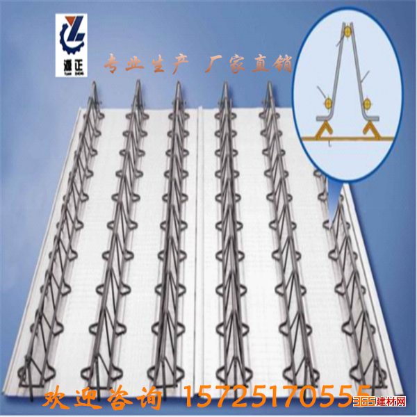 钢筋桁架楼承板系统是一种把钢筋加工成桁架后,再将钢筋桁架与镀锌底板焊接成一体的由工厂生产的标准化产品。它..