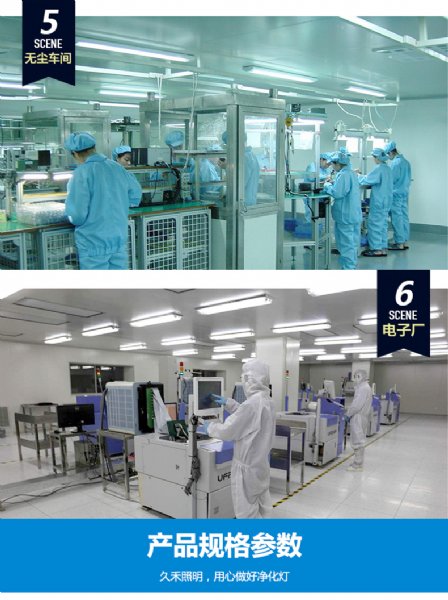 适用场所:计算机、微电子、半导体、精密仪器、航天科技、GMP医药、生物工程、食品、化妆品、精细化工、实验室、医院等行业无尘厂房、洁净工程、家居照明、商业装饰的照明。