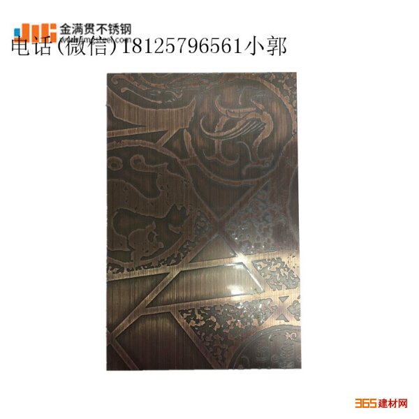 是用不锈钢板材通过蚀刻工艺在不锈钢板上蚀刻各类图案,图形,然后再镀铜(红古铜,青古铜,黄古铜,黑古铜),或者镀上其他颜色,例如玫瑰金、钛金、宝石蓝、香槟金等颜色。镀铜颜色*能体现出产品的复古元素、古典韵味!!