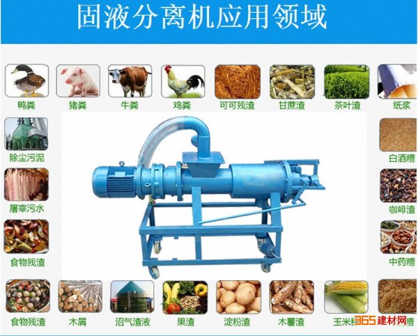 固液分离机,用处广泛。可以处理:鸭粪,猪粪,牛粪,鸡粪,鹌鹑粪等各种粪便及可可残渣,甘蔗渣,茶叶渣,咖啡渣,淀粉渣,果渣,纸浆,白酒糟,中药糟,啤酒糟,木薯糟,玉米糠,沼气渣液,食物残渣,屠宰污水,除尘污泥等多种固液混合体。可应用在:猪粪残留物脱水,有机肥生产,鸡鸭粪处理现场,工业沼渣处理,牛粪处理等各种领域。