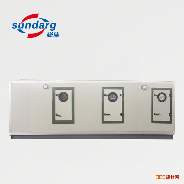 是由各种空气处理功能段组装而成的一种空气处理设备。适用于阻力大于100Pa的空调系统。 机组空气处理功能段有空气混合、均流、过滤、冷却、一次和二次加热、去湿、加湿、送风机、回风机、喷水、消声、热回收等单元体。