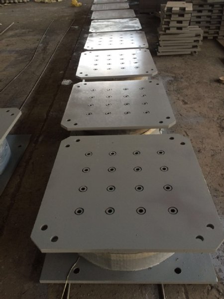 安装随桥梁施工工艺不同而不同。对于现浇主梁的桥梁,一般先将上下连接板与支座上下钢板固定相对位置,上好套筒螺栓,整体吊装,安装在设计位置上,进行主梁浇灌。对于主梁预制吊装的桥梁,则必须是上连接板与预制梁的预埋板焊接时一事实上要注意降温,以免烧坏支座。不管是采用现浇梁法还是预制梁法施工,不管安装何种类型的铅芯隔震橡胶支座,为了保证安装橡胶支座的施工质量,以及调整、观察和更换支座的方便,在墩台项必须设置支承垫石,桥墩支承垫石内必须布置钢筋网。