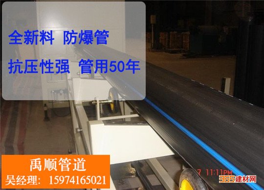 在供水工程中的应用:禹顺pe给水管的施工。(1)禹顺pe给水管硬度不如钢管,它在受到坚硬物的冲击时很容易被穿孔,因而在埋地施工中,回填土时应在管底、管侧、管上填充沙土,管顶上沙土层厚度不应低于50cm,然后再填土夯实,每30cm厚度土层进行一次夯实,逐层夯实至地表。另外,在管顶上方50cm土层处应埋人警示带以告知下方有禹顺pe给水管,以防止将来挖掘时因施工不慎,被机械或人为损坏。(2)禹顺pe给水管、管件之间的连接。禹顺pe给水管、管件之间的连接一般有热熔连接、电熔连接,热熔连接又分为热熔承插连接和热熔对接连接,目前一般采用热熔对接,热熔连接要采用相应的*连接工具,连接时严禁明火。要校直两对立的待连接件,使其在同一轴线上。